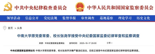 来源:中央纪委国家监委网站等编者按:中央纪委国家监委网站10月17日报道,中南大学原党委常委、校长张耀学涉嫌严重违纪违法,目前正接受中央纪律审查和监察调查 纪律检查委员会和国家监察委员会。公开信息显示,张耀学,男,汉族,1956年1月出生,湖南常德澧县人。中国工程院院士、中南大学原校长、清华大学计算机系教授、中国作家协会会员国务院学位委员会委员、国务院信息技术咨询委员会委员、计算机学会外围计算专委会委员、中国人民解放军军部综合部军事专家计算机与软件专业组、《国际无线与移动计算》、《自主与可信计算》、《中国电子学报》等国内外期刊 期刊。陕西西北电讯工程学院)电子工程系学习,获学士学位;学士学位。清华大学计算机系教师、副教授、教授、教研室副主任,1994年6月任清华大学计算机系副主任华大学; 1997年11月起任电子部计算机司副司长、国家电子信息系统办公室副主任(挂职);教育部科学技术司;年轻干部培训班; 2007年5月至2008年9月,任北京奥组委总体规划部副主任; 2007年当选为中国工程院院士); 2009年6月至2011年10月,兼任国务院学位委员会委员、教育部学位管理和研究生教育司司长; 2011年10月21日,经中共教育部党组研究,并会同中共湖南省委一致决定,张耀学将担任中南大学党委委员、中共常委。 2011年11月1日至2017年6月1日任中南大学校长。中共湖南省第十一届委员会委员。第十二届全国政协委员。 2016年12月7日下午,湖南省科协第十届省委第一次全体会议召开,张耀学当选湖南省科协第十届省委主任委员。 2017年6月1日,中共中央组织部公布了中南大学党中央、国务院任免决定。张耀学不再担任中南大学校长。 2015年2月11日,入选荣获“2014中国互联网年度人物”盛典。获2004年国家技术发明二等奖,2001年、1998年国家科技进步二等奖,2007年IEEE Aina国际会议最佳论文奖。 2007年当选为中国工程院院士。我国计算机网络技术早期主要研究者之一,领导并参与了我国第一个网络接入网的研制,提出并成功研制了扩展冯·诺依曼结构的透明网络终端。着有《又见花木兰》、《水随天》等管理散文集。